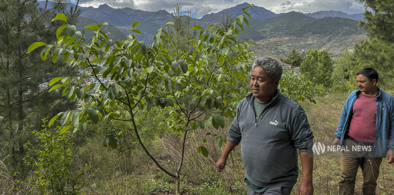 Rangaraj Dhital from Bharta, Kalikot, began commercial walnut farming after seeing its potential.