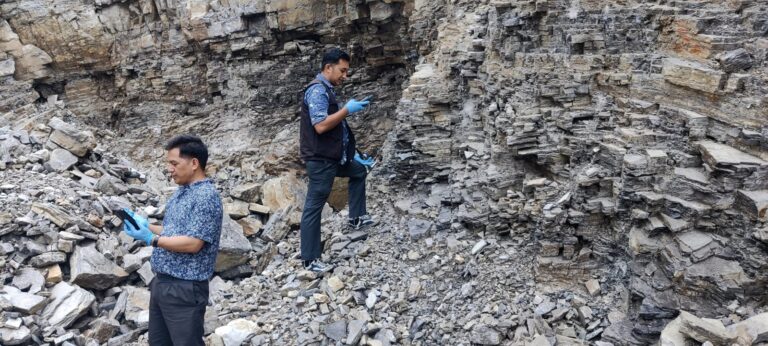 Officials of the Department of Mines and Geology studying a stone quarry in Palpa district. Photo: Courtesy DoMG