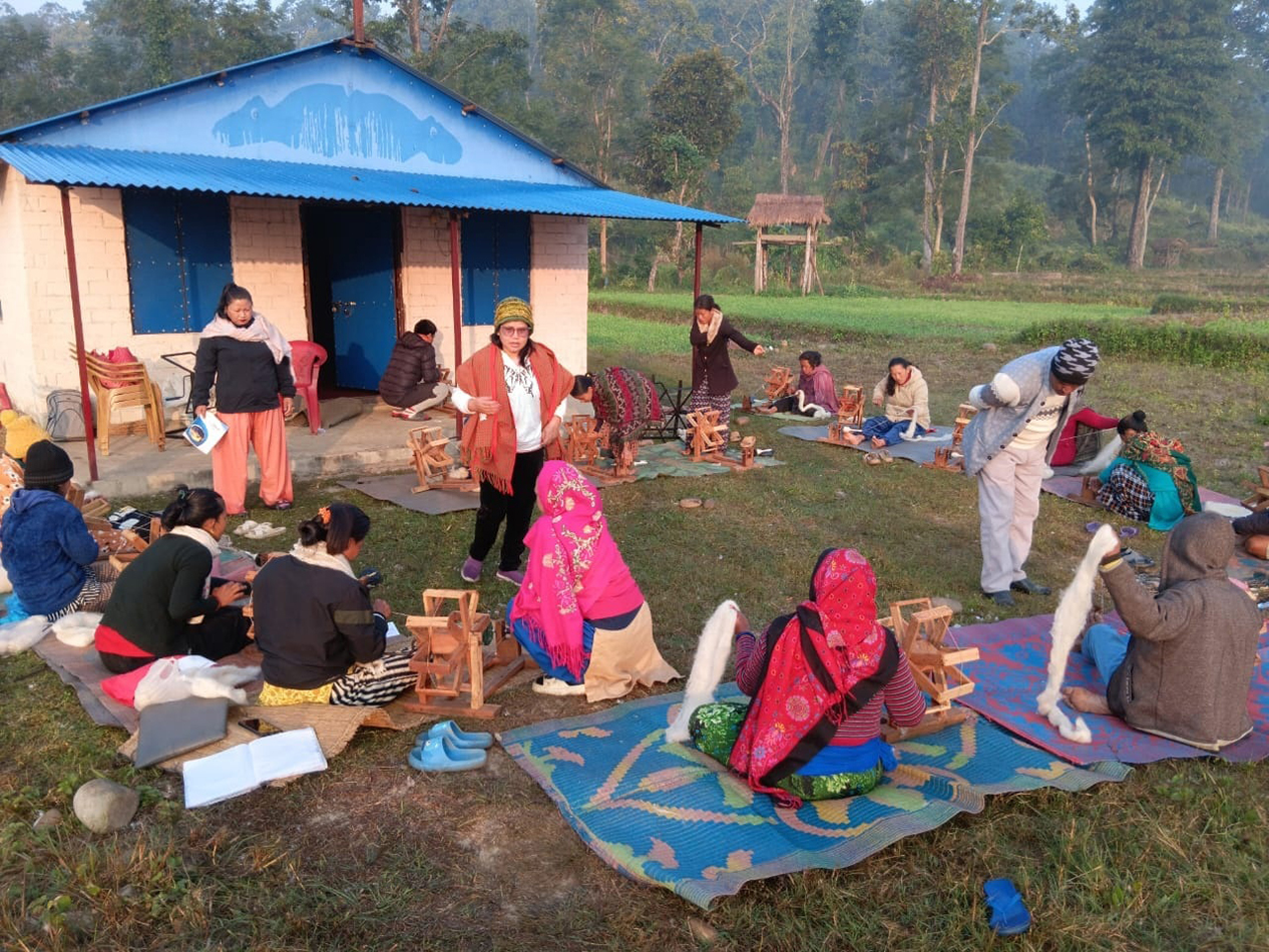 A training session for spinning wool and thread. Photo Courtesy: Buddhimaya Ghale/ Facebook