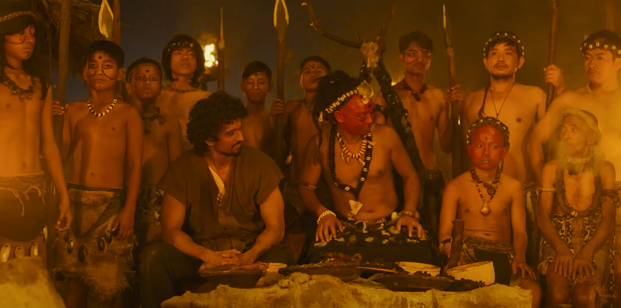 Director Santosh appears in a short but impactful role, fitting well as a tribal villager. However, the entire village ensemble looks mismatched with the post-apocalyptic film characters.