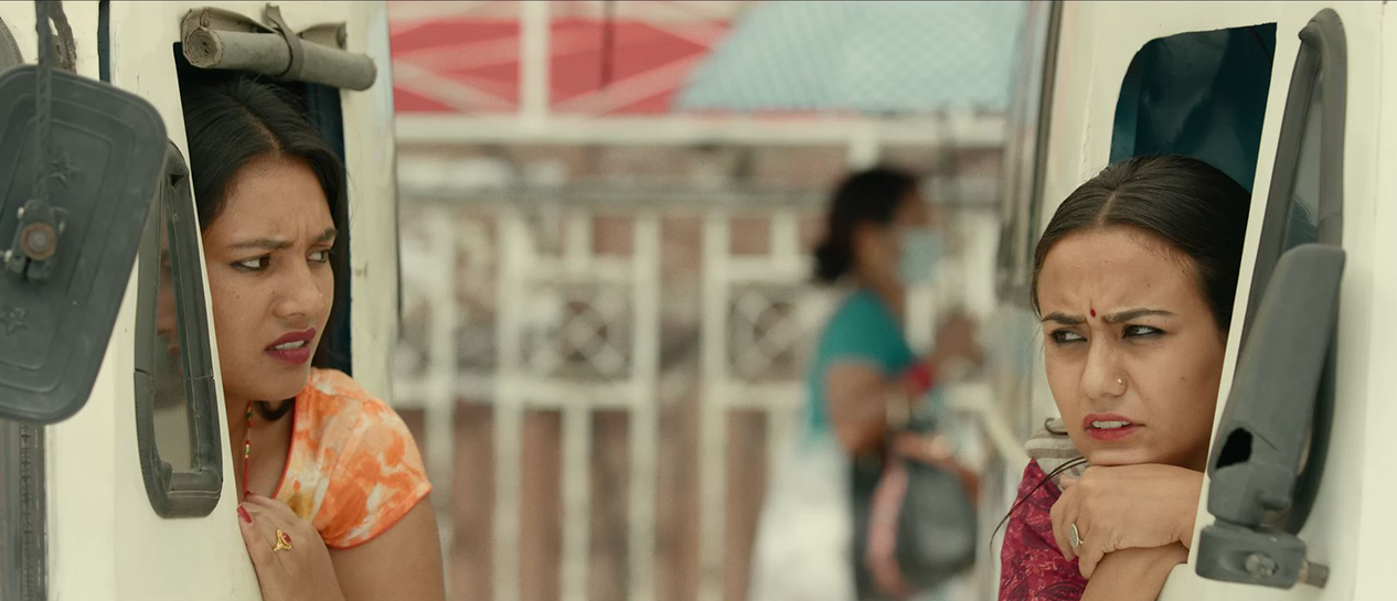 Bardewa alongside actress Swastima Khadka in a scene from the film ‘Bulbul’