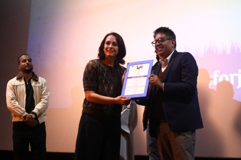 Director Nani Sahra Walker accepting the award for the film ‘Shakti.’ Photo Courtesy: Nepal International Human Rights Film Festival