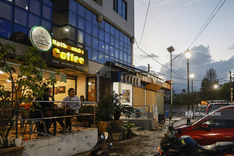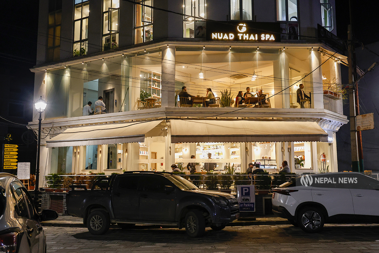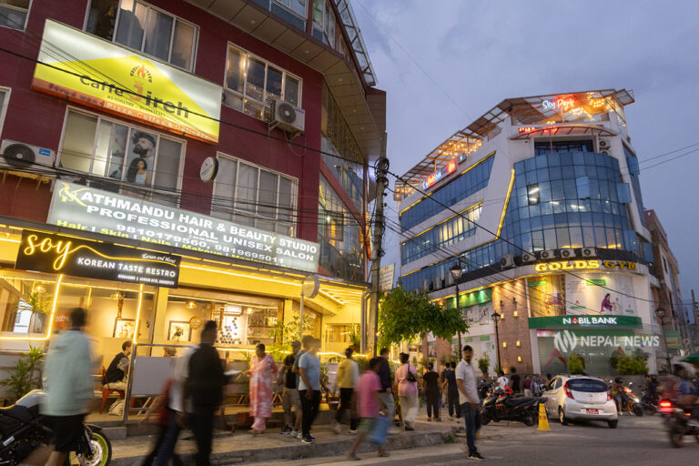 As the evening deepened, the buildings that looked plain during the day and the names of the cafes began to glow in colorful letters: Bhaisepati Complex, Sobel, Kathmandu Coffee, Good Mixers, Caffeophilia, Salesberry, Smile Mart, Gold’s Gym, and more. These names were giving a glimpse of the sophisticated lifestyle here.