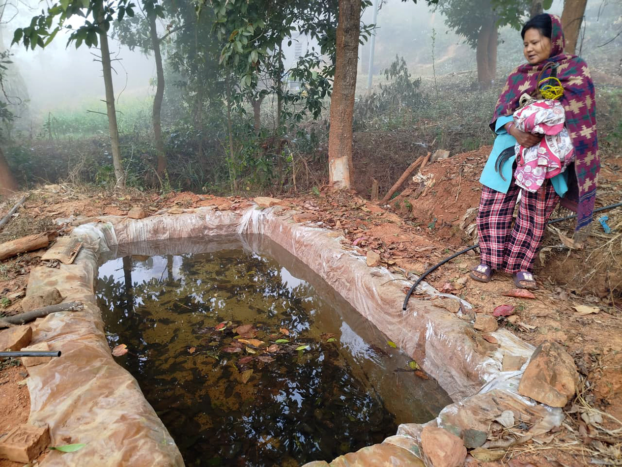 The plastic pond built by Saptamaya and Kumar Tamang Photo: Bidhya Rai