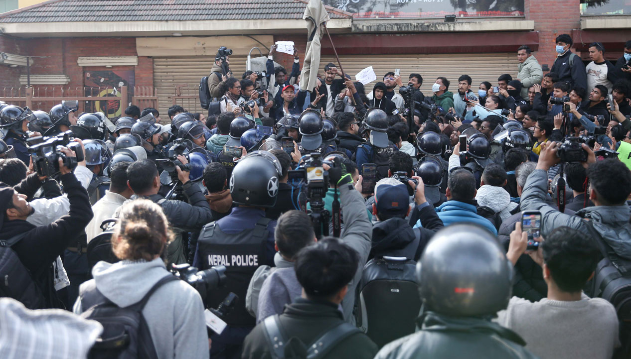 KATHMANDU. Youths have organized protests at Maitighar in Kathmandu, chanting slogans and claiming, “Gen-G’s demand was not to hold elections, but ensure good governance.”
