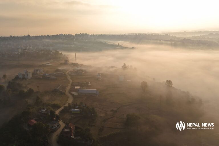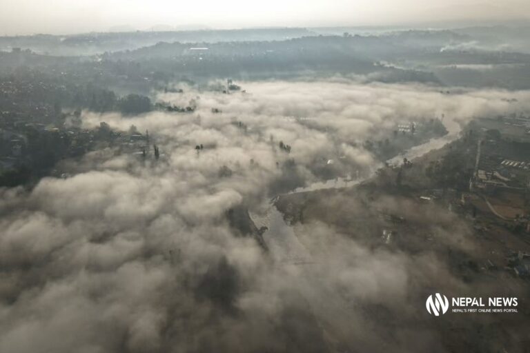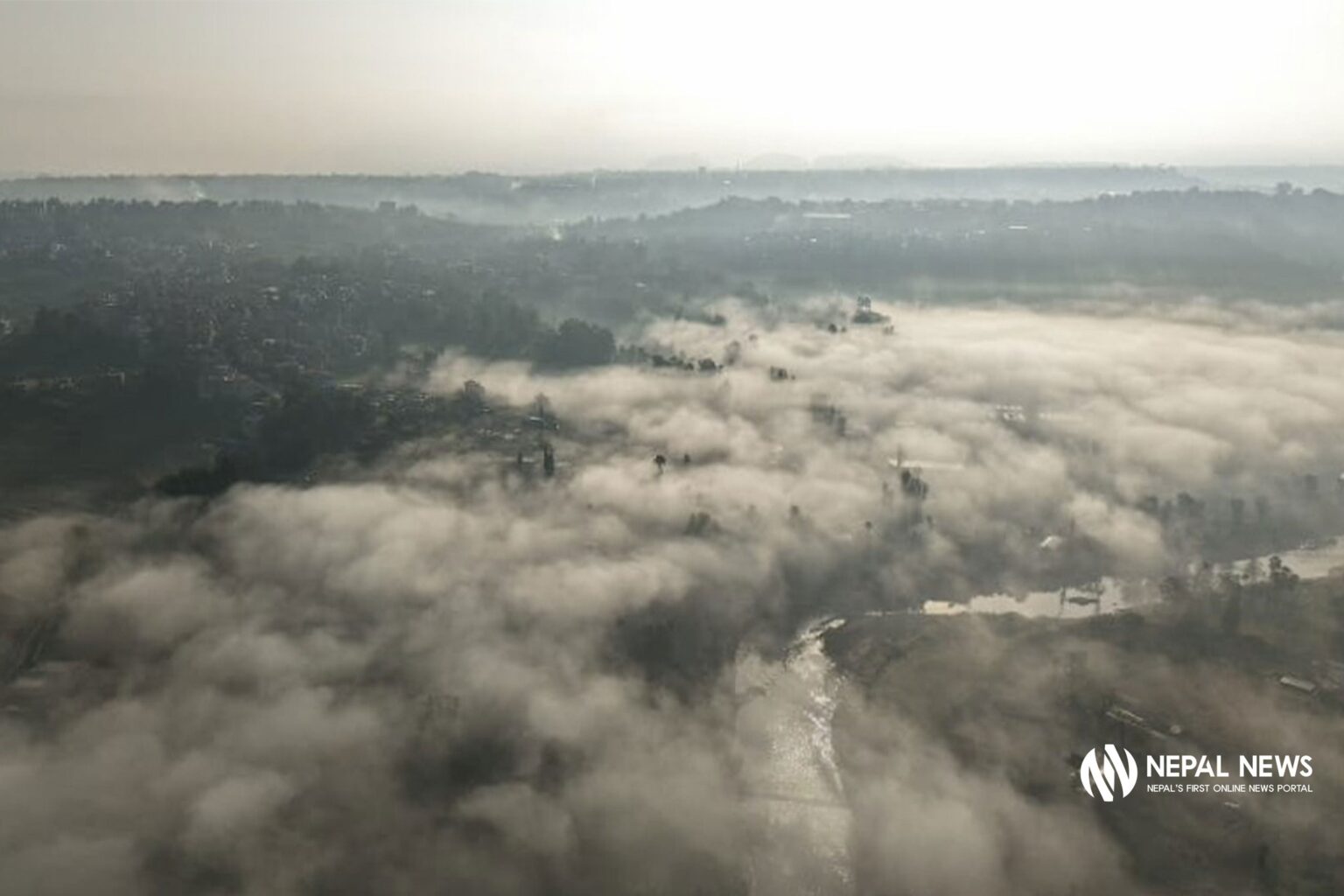 With the cooling temperatures, fog has begun to form over the Taudah area of Kathmandu and the Bagmati River in Khokana, Lalitpur. This mist settles over the river surface and slowly fades away after sunrise.