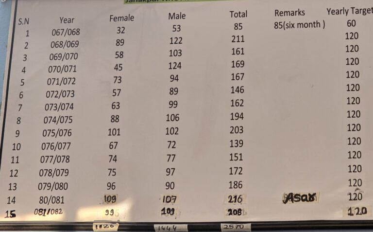 According to Nutrition Rehabilitation Center data, 186 children were admitted due to malnutrition in fiscal year 2079/80 BS (2022/23), 216 in 2080/81 BS (2023/24), and 208 in 2081/82 BS(2024/25).