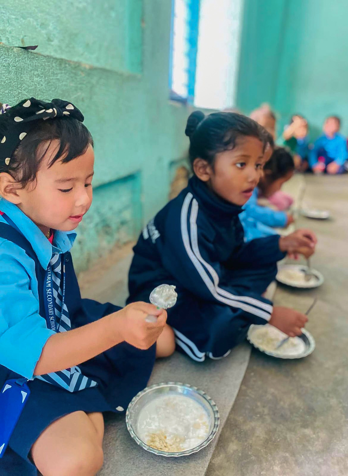 Students of Sitaram Secondary School enjoying midday meal