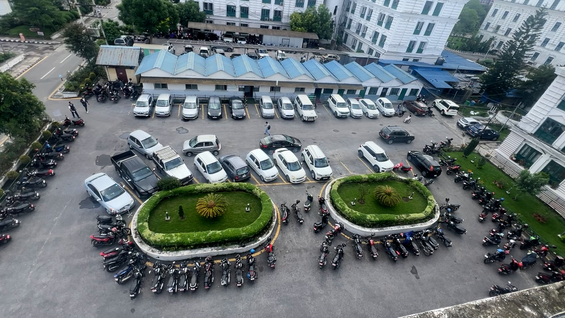 The parking lot of Ministry of Finance inside SIngha Durbar premises on August 11, 2025. Photo: Shikha Shrestha/Nepal News