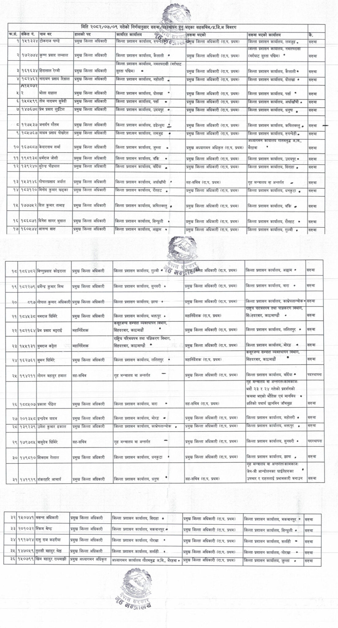 KATHMANDU: On Sunday, the Ministry of Home Affairs announced the transfer of Chief District Officers (CDOs) across 36 districts.