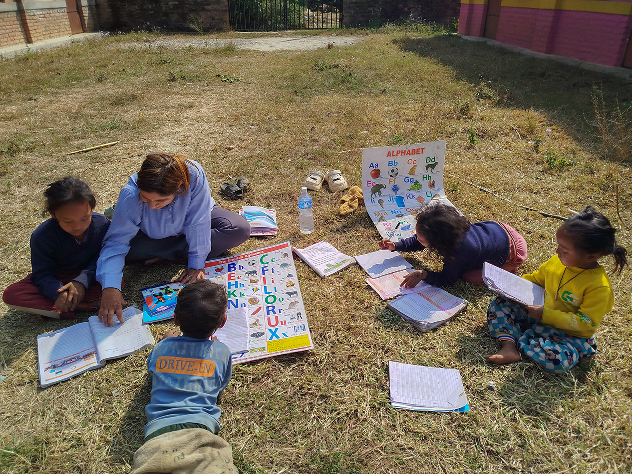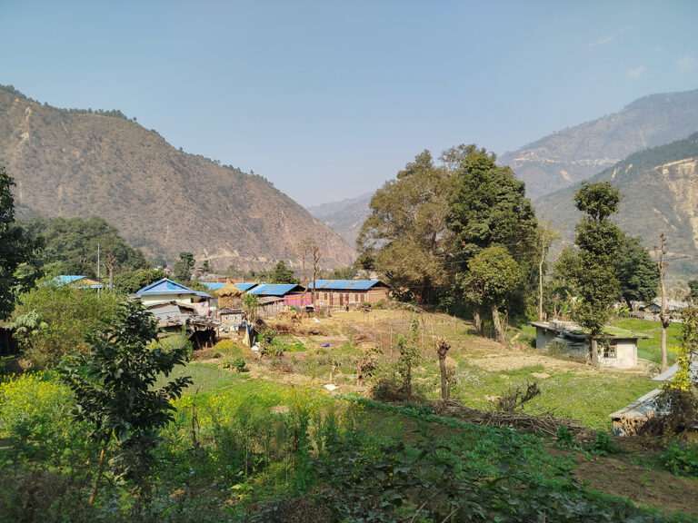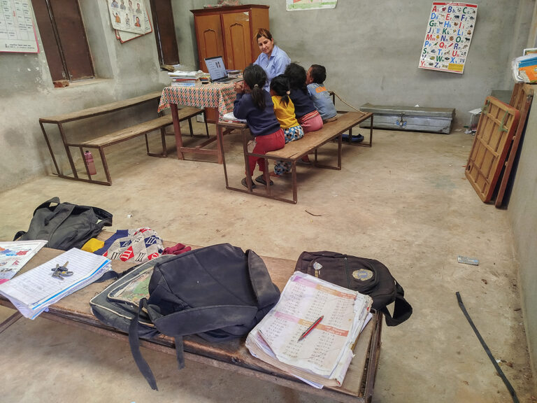On 11 February 2026, when Nepal News reached the gate of Ganga Primary School in Timalbesi, Panchkhal Municipality-13, Kavre, it was 11:30 a.m. The national flag was flying at the school gate. The school, surrounded by walls and barbed wire, was deserted. Among the four children in the schoolyard, some were lying on the ground while others were sitting cross-legged. They had a few books and study materials with them. Teacher Junu Acharya was checking the students’ homework while sitting on a chakati (traditional mat). Office Assistant Kumar Pandey was observing the activities of teachers and students while enjoying the winter sun. At first glance, the scene looked like a tuition class. But over the past few years, as the settlement dwindled, Ganga Primary School has become almost student-less.