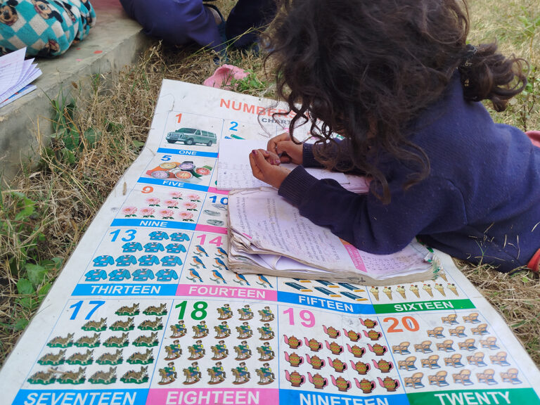 After the government adopted a policy to merge or adjust schools with low student numbers into nearby government schools, Ganga Primary School was merged two years ago with Ram Secondary School nearby. Ram Secondary School is located near the ward office of Panchkhal Municipality-13, about an hour and a half walk from Ganga Primary School. Children who cannot reach the school and have no alternative for learning are still taught at Ganga Primary even after school merger. “The records of these children are at Ram Secondary, but because they cannot walk uphill to Ram Secondary, we have to teach them here,” says teacher Acharya.