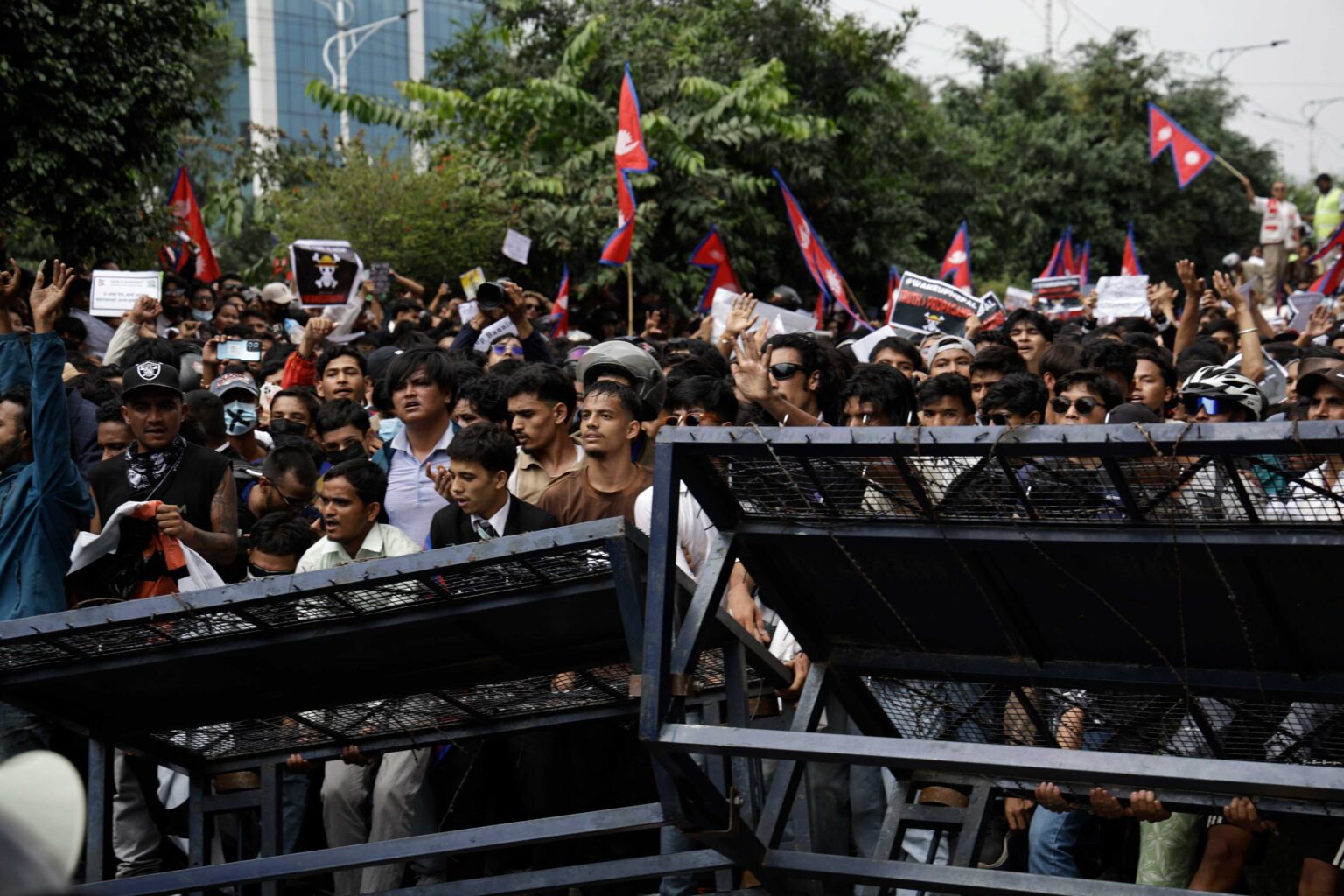 Protesters breaking through police barricades on the first day of the Gen Z movement on September 8. Photo: Bikram Rai/Nepal News