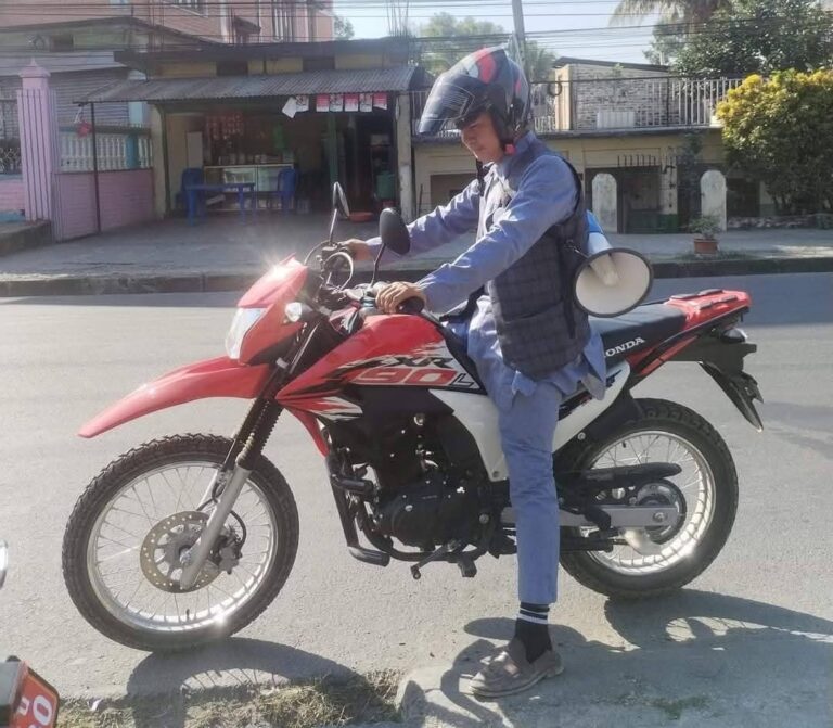 However, shortly after that, he purchased a Honda XR motorcycle, worth about seven hundred thousand rupees, with money from the Water Supply Board. Currently, he travels sometimes in the sub-metropolitan city’s vehicle and sometimes on the motorcycle.