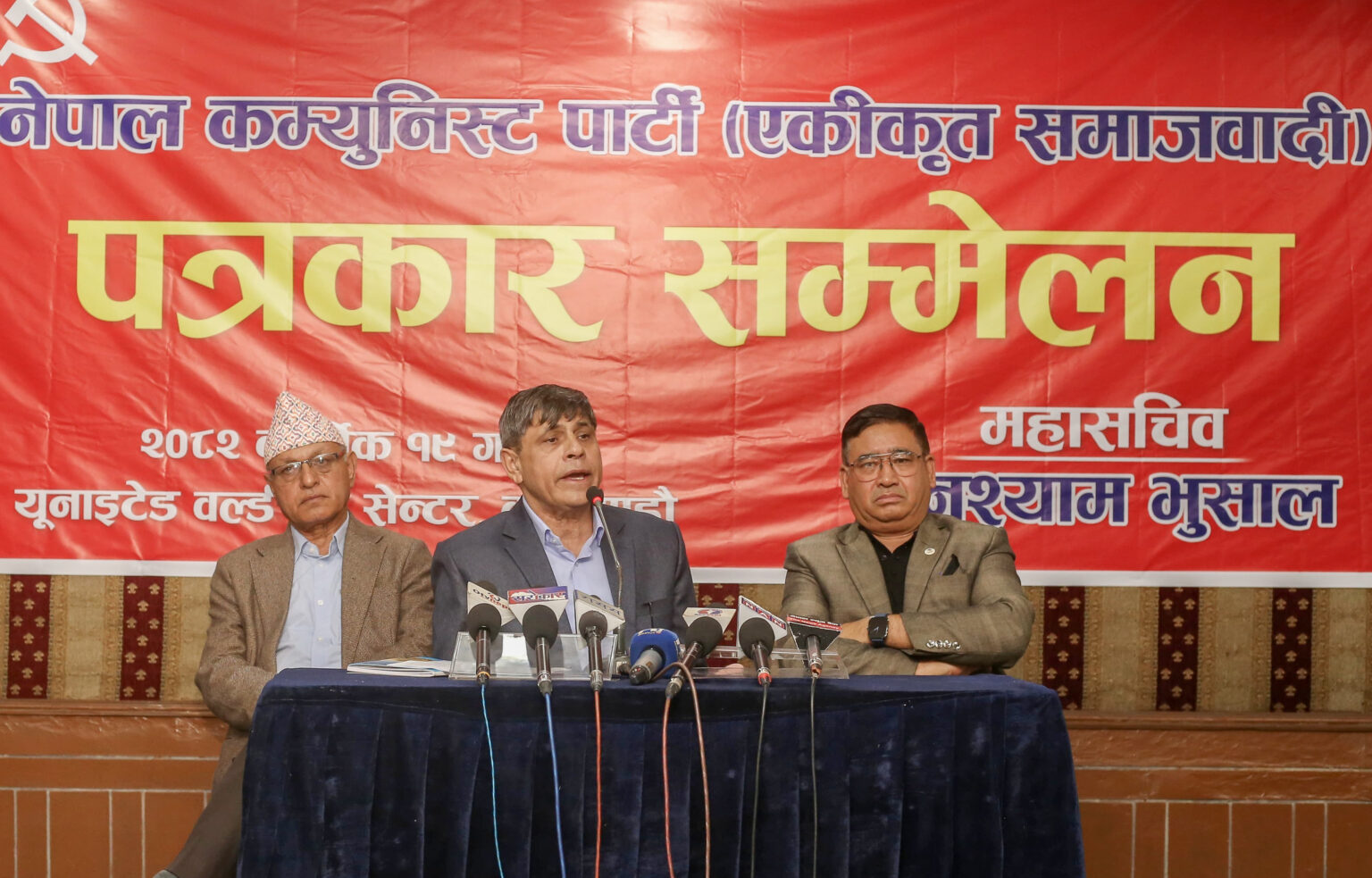Before the announcement ceremony of the Nepali Communist Party, General Secretary Ghanshyam Bhusal of CPN (US) held a press conference in Tripureshwor and announced a separate campaign for broad left-wing unity. Bhusal had said, “We wrote a new constitution, a new state system was formed, and major and new changes occurred in the structure of society due to migration and market expansion; the slogans and mandates of the political parties became new—everything became new. But the leadership of the old political parties has not changed.”