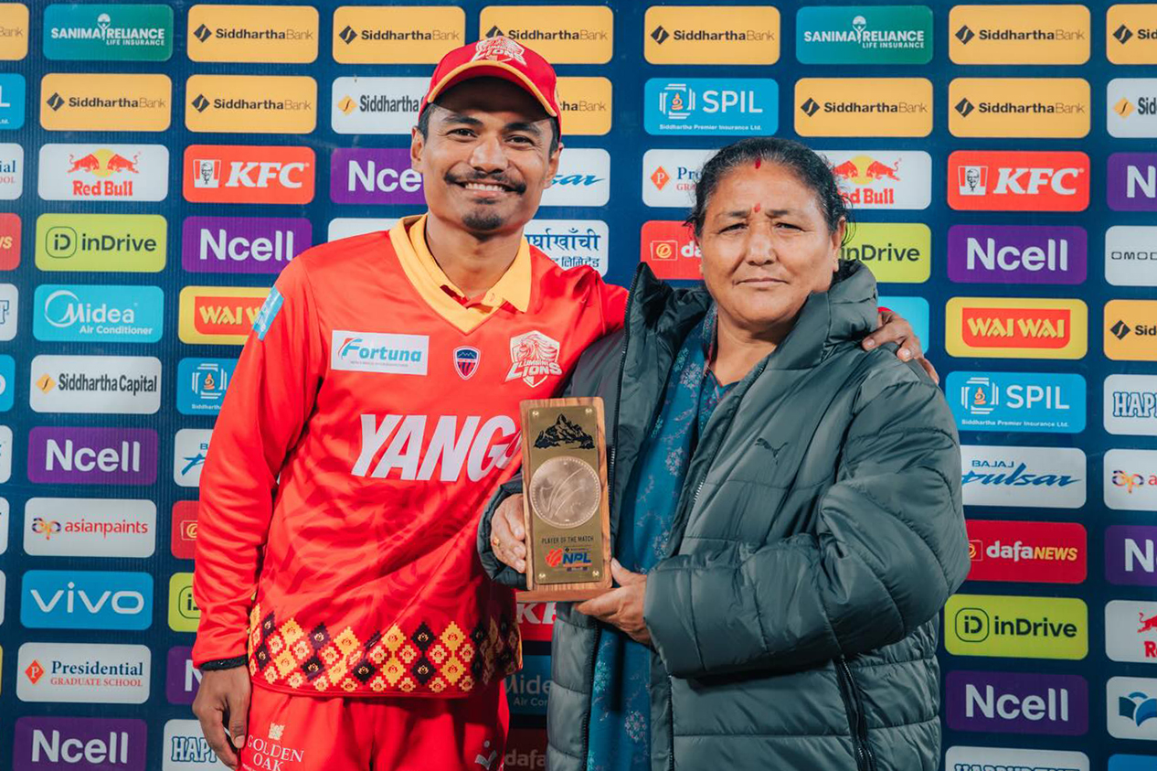 After the continuous poor performance, he was also accused on social media of playing a slow, defensive style. However, his mother, Paljesh Paudel, was completely confident in her son’s ability. To boost his morale, she traveled from Bardghat, Nawalparasi, to the capital and suddenly appeared on the field before the match against the Pokhara Avengers.