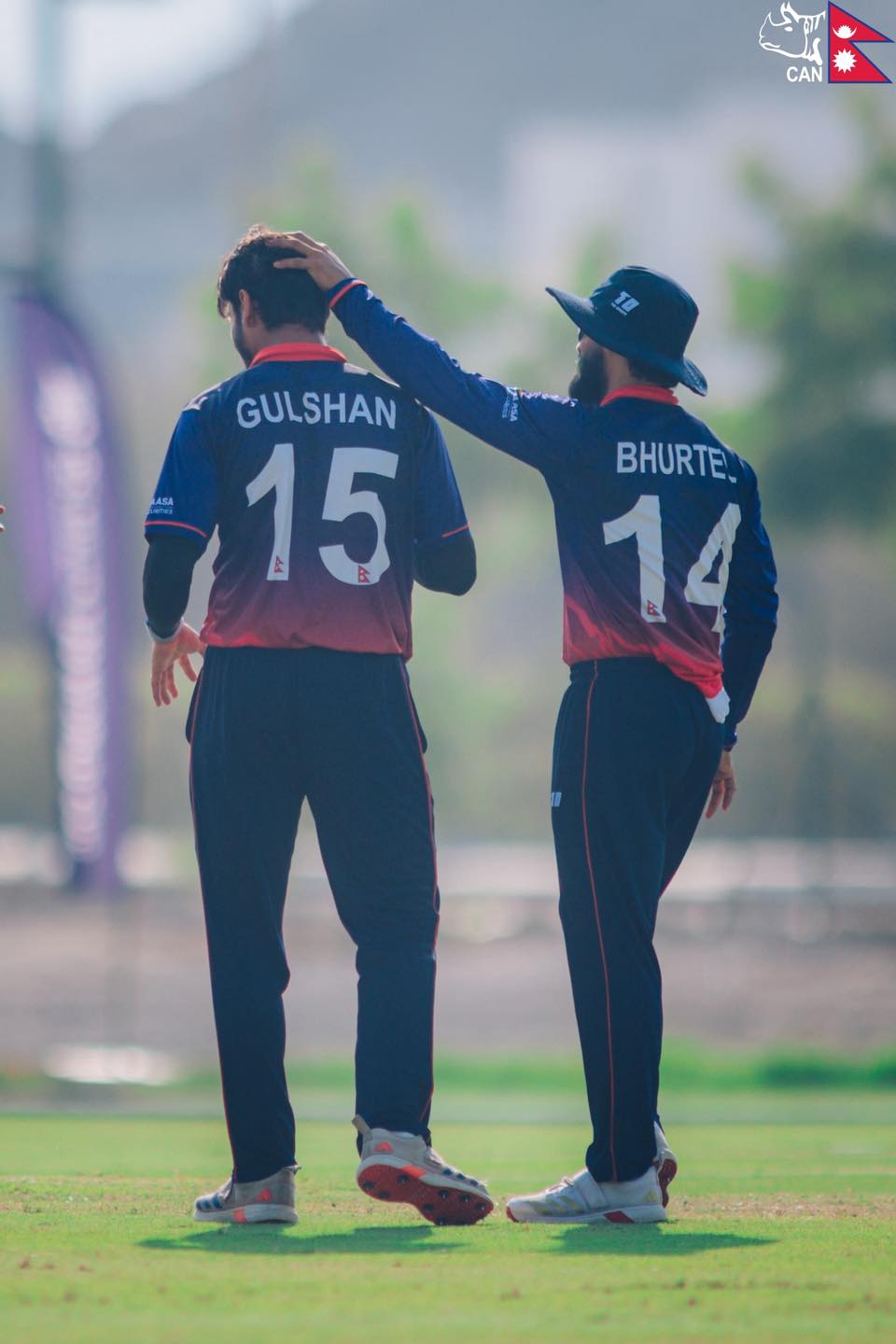 In the match against Kuwait, while chasing a target of 142 runs, Kushal stood at the crease until the last over. He was bowled by Anudeep Chenthamara in the 19.5th over. He hit three fours and three sixes off 56 balls and also took one wicket. Gulshan also made 18 runs by hitting three sixes off 6 balls in the last over, enabling Nepal to give Kuwait a strong target.